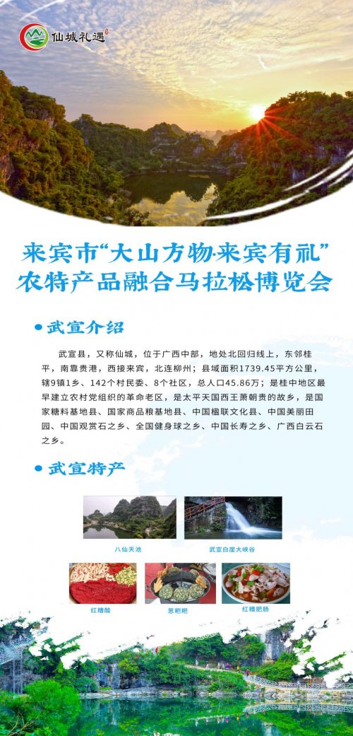 2023年11月23日至25日,来宾市“大山方物·来宾有礼”农特产品融合马拉松博览会将在广西来宾市人力资源服务产业园盛大举办。武宣县携“仙城礼遇”系列优质农特产品重磅参展,以展会为桥,以好物为媒,向八方宾客展现仙城大地的生态之美、产业之兴与人文之韵。